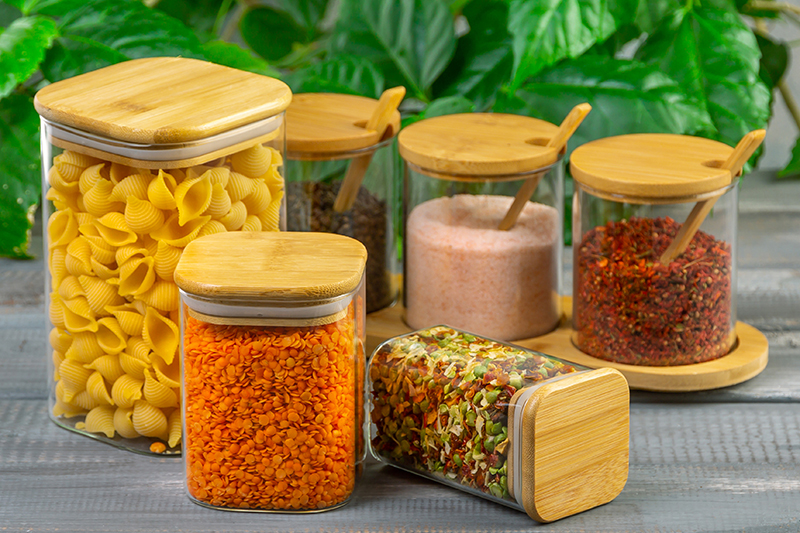 Банка д/хранения 1,1 л 10*10*15,5 см "Crystal glass" + бамбуков.крышка с силикон. прокладкой, стекло