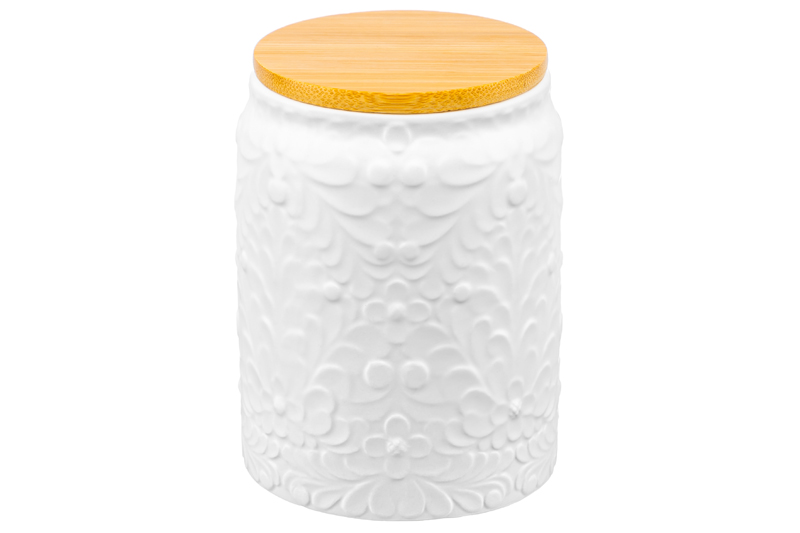Банка от Elan Gallery предназначена для организации хранения продуктов на вашей кухне. Размер ёмкости – 12х12х16,4 см, объём – 1,1 литр. Выполнена из керамики и имеет белый цвет, матовая поверхность украшена рельефным лиственным орнаментом. Крышка выполнена из натурального бамбука и оснащена силиконовым уплотнителем. Изделие отлично подойдёт для хранения сыпучих продуктов: сахара и соли, чая и кофе, приправ и специй. Храните в баночке ягоды, орехи и сухофрукты. Заполните её любимыми сладостями: леденцами, конфетами или печеньем. Подайте к столу, чтобы идеально дополнить чайную сервировку! Герметичная деревянная крышечка защитит ваши продукты от попадания грязи и пыли. Коллекция из двух баночек лаконичных цветов впишется в любой интерьер и позволит организовать хранение даже на открытых полках. Не рекомендуется применять абразивные моющие средства. Не подходит для использования в микроволновой печи. Без бамбуковой крышки подходит для посудомоечной машины. Бамбук нельзя замачивать! Поставляется в дизайнерской картонной коробке – благодаря ей вам не потребуется дополнительная подарочная упаковка. Это идеальный подарок для хозяйки, ценящей не только практичность, но и стиль. В ассортименте бренда Элан Галерея представлены банки для хранения на любой вкус. Соберите целый набор кухонных контейнеров для эстетичного хранения продуктов на вашей кухне!