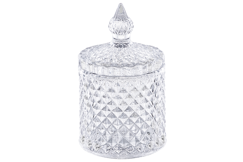 Банка для хранения Elan Gallery "Ромбики" выполнена из прозрачного стекла и украшена декоративным рельефным узором. Размер изделия – 8,5х8,5х14 см, объём – 270 мл. Высота без крышки – 8 см. Прозрачная баночка с фигурной крышкой подойдёт для хранения мёда, варенья, сахара и соли. Можно использовать её как ёмкость для чая, кофе и других сыпучих продуктов. Декоративная баночка округлой формы станет гармоничным дополнением при сервировке вашего стола как в будни, так и на праздник. Красивый дизайн позволит использовать её не только для хранения продуктов, но и для подачи на стол в роли медового горшочка. Положите в неё конфеты или икру, чтобы удивить гостей изящной сервировкой. Стеклянную ёмкость с крышечкой можно использовать не только как сахарницу, икорницу или соусник, но и для специй и приправ. Это позволит держать под рукой всё необходимое во время приготовления и приёма пищи. На даче медовница будет незаменимой для семейного чаепития, а также подойдёт для подачи ягод. В качестве альтернативы красивый бочонок можно использовать как шкатулку или органайзер для ватных палочек, дисков и других предметов гигиены. Сложите в неё украшения, бижутерию, а также резинки и заколки. Подходит в роли формы для свечей. Не рекомендуется применять абразивные моющие средства. Можно мыть в посудомоечной машине. Нельзя использовать в микроволновой печи. Поставляется в картонной упаковке. Красивая посуда – это отличный подарок на любой праздник. Баночка для хранения станет многофункциональным дополнением вашего кухонного инвентаря или интерьерным украшением ванной и комнаты!