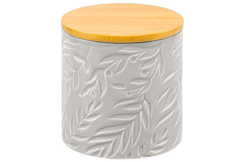 Банка от Elan Gallery предназначена для организации хранения продуктов на вашей кухне. Размер ёмкости – 10х10х11 см, объём – 430 мл. Выполнена из керамики и имеет светло-серый цвет, поверхность украшена рельефным лиственным узором. Крышка выполнена из натурального бамбука и оснащена силиконовым уплотнителем. Изделие отлично подойдёт для хранения сыпучих продуктов: сахара и соли, чая и кофе, приправ и специй. Храните в баночке ягоды, орехи и сухофрукты. Заполните её любимыми сладостями: леденцами, конфетами или печеньем. Подайте к столу, чтобы идеально дополнить чайную сервировку! Герметичная деревянная крышечка защитит ваши продукты от попадания грязи и пыли. Коллекция из трёх баночек нежных природных цветов впишется в любой интерьер и позволит организовать хранение даже на открытых полках. Не рекомендуется применять абразивные моющие средства. Не подходит для использования в микроволновой печи. Без бамбуковой крышки подходит для посудомоечной машины. Бамбук нельзя замачивать! Поставляется в дизайнерской картонной коробке – благодаря ей вам не потребуется дополнительная подарочная упаковка. Это идеальный подарок для хозяйки, ценящей не только практичность, но и стиль. В ассортименте бренда Элан Галерея представлены банки для хранения на любой вкус. Соберите целый набор кухонных контейнеров для эстетичного хранения продуктов на вашей кухне!