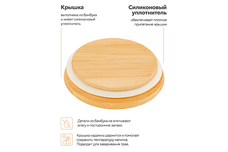 Банка д/хранения 450 мл 9,5*9,5*9,5 см "Бисер"с бамбуковой крышкой с силик.уплотнит. молочно-белый