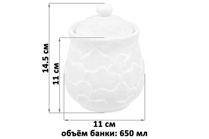 Банка из серии «Пион» от Elan Gallery предназначена для организации хранения продуктов на вашей кухне. Размер ёмкости – 11х11х14,5 см, объём – 650 мл. Выполнена из высококачественного белого фарфора. Он не впитывает цвет продуктов и легко отмывается, благодаря чему надолго сохранит свою белизну. Поверхность изделия украшена рельефным узором в виде лепестков пиона. Крышка оснащена силиконовым уплотнителем и ручкой, обеспечивающей удобное снятие. Изделие отлично подойдёт для хранения сыпучих продуктов: сахара и соли, чая и кофе, приправ и специй. Храните в баночке ягоды, орехи и сухофрукты. Заполните её леденцами, конфетами или небольшим печеньем. Подайте баночку к столу, чтобы идеально дополнить чайную сервировку! Герметичная деревянная крышка защитит ваши продукты от попадания грязи и пыли. Баночка впишется в любой интерьер и позволит организовать хранение даже на открытых полках. Не рекомендуется применять абразивные моющие средства. Подходит для использования в микроволновой печи и посудомоечной машине. Поставляется в дизайнерской картонной коробке – благодаря ей вам не потребуется дополнительная подарочная упаковка. Это идеальный подарок для хозяйки, ценящей не только практичность, но и стиль. В ассортименте бренда Элан Галерея представлены банки для хранения на любой вкус. Соберите целый набор для эстетичного хранения продуктов на вашей кухне!