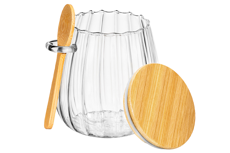 Банка с бамбуковыми крышкой и ложкой в комплекте от бренда Elan Gallery выполнена из боросиликатного стекла и украшена рельефным узором в виде вертикальных полосок. Крышечка из натурального бамбука оснащена силиконовым уплотнителем, что обеспечивает её герметичность. На стеночке ёмкости есть специальный держатель в виде колечка, который позволяет удобно хранить ложку из натурального бамбука, которая поставляется в комплекте. Размер – 11х11х11,5 см, объём – 680 мл. Высота без крышки – 10,8 см. Размер ложки – 12,4х2,7х0,5 см. Прозрачная баночка подойдёт для хранения мёда, варенья, сахара и соли. Можно использовать её как ёмкость для чая, кофе и других сыпучих продуктов. Декоративная баночка станет гармоничным дополнением при сервировке вашего стола как в будни, так и на праздник. Красивый дизайн позволит использовать её не только для хранения продуктов, но и для подачи на стол. Положите в неё икру, чтобы удивить гостей изящной сервировкой. Стеклянную ёмкость с крышечкой можно использовать не только как сахарницу и икорницу, но и для специй и приправ. Это позволит держать под рукой всё необходимое во время приготовления и приёма пищи. На даче медовница будет незаменимой для семейного чаепития, а также подойдёт для подачи джема. Не рекомендуется применять абразивные моющие средства. Без крышки и ложки можно использовать в посудомоечной машине и микроволновой печи. Бамбук запрещено замачивать. Поставляется в картонной упаковке. Красивая посуда – это отличный подарок на любой праздник. Стеклянный бочонок станет многофункциональным дополнением вашего кухонного инвентаря и настоящим украшением интерьера!