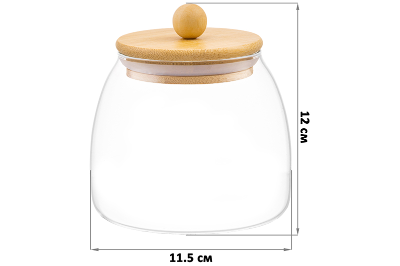 Банка д/хранения 700 мл 11,5*11,5*12 см "Crystal glass" + бамбуков.крышка с силикон. прокладкой,стек