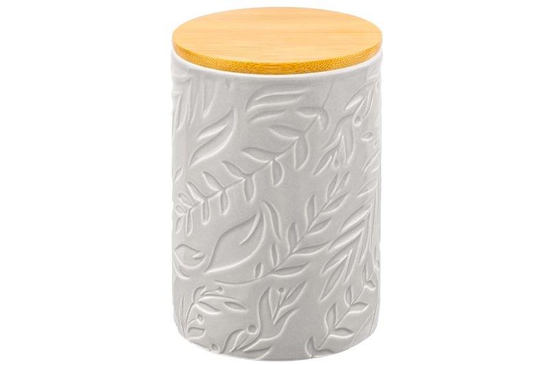 Банка от Elan Gallery предназначена для организации хранения продуктов на вашей кухне. Размер ёмкости – 10х10х15 см, объём – 750 мл. Выполнена из керамики и имеет светло-серый цвет, поверхность украшена рельефным лиственным узором. Крышка выполнена из натурального бамбука и оснащена силиконовым уплотнителем. Изделие отлично подойдёт для хранения сыпучих продуктов: сахара и соли, чая и кофе, приправ и специй. Храните в баночке ягоды, орехи и сухофрукты. Заполните её любимыми сладостями: леденцами, конфетами или печеньем. Подайте к столу, чтобы идеально дополнить чайную сервировку! Герметичная деревянная крышечка защитит ваши продукты от попадания грязи и пыли. Коллекция из трёх баночек нежных природных цветов впишется в любой интерьер и позволит организовать хранение даже на открытых полках. Не рекомендуется применять абразивные моющие средства. Не подходит для использования в микроволновой печи. Без бамбуковой крышки подходит для посудомоечной машины. Бамбук нельзя замачивать! Поставляется в дизайнерской картонной коробке – благодаря ей вам не потребуется дополнительная подарочная упаковка. Это идеальный подарок для хозяйки, ценящей не только практичность, но и стиль. В ассортименте бренда Элан Галерея представлены банки для хранения на любой вкус. Соберите целый набор кухонных контейнеров для эстетичного хранения продуктов на вашей кухне!