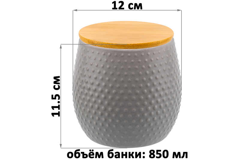 Банка из серии «Пузырьки» от Elan Gallery предназначена для организации хранения продуктов на вашей кухне. Размер ёмкости – 12х12х11,5 см, объём – 850 мл. Выполнена из керамики и имеет серый цвет, поверхность украшена выпуклым рельефом. Крышка выполнена из натурального бамбука и оснащена силиконовым уплотнителем. Изделие отлично подойдёт для хранения сыпучих продуктов: сахара и соли, чая и кофе, приправ и специй. Храните в ней ягоды, орехи и сухофрукты. Заполните её любимыми сладостями: леденцами, печеньем или конфетами. Подайте к столу, чтобы идеально дополнить чайную сервировку! Герметичная деревянная крышечка защитит ваши продукты от попадания грязи и пыли. Коллекция из трёх баночек монохромных цветов впишется в любой интерьер и позволит организовать хранение даже на открытых полках. Не рекомендуется применять абразивные моющие средства. Не подходит для использования в микроволновой печи. Без бамбуковой крышки подходит для посудомоечной машины. Бамбук нельзя замачивать! Поставляется в дизайнерской картонной коробке – благодаря ей вам не потребуется дополнительная подарочная упаковка. Это идеальный подарок для хозяйки, ценящей не только практичность, но и стиль. В ассортименте бренда Элан Галерея представлены банки для хранения на любой вкус. Соберите целый набор кухонных контейнеров для эстетичного хранения продуктов на вашей кухне!
