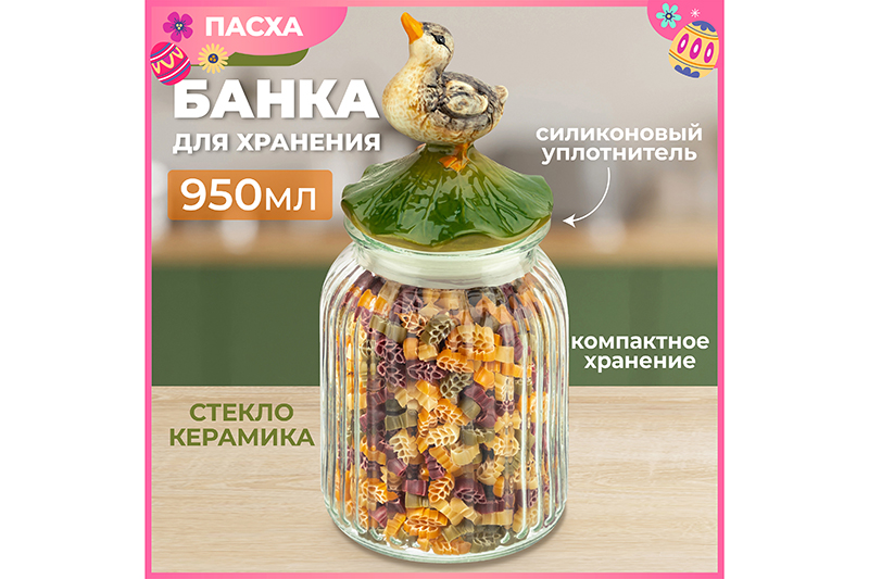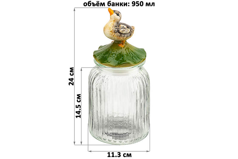 Банка д/хранения 950 мл 11,3*11,3*24 см "Уточка" с крышкой с силиконовым уплотнителем