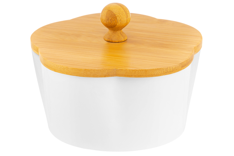 Банка для печенья из серии «Айсберг» предназначена для эстетичной сервировки вашего стола. Размер изделия – 14,8х14,8х11,5 см, объём – 760 мл. Выполнена из высококачественного белого фарфора в форме цветка, крышка выполнена из натурального бамбука. Фарфор легко отмывается и не впитывает цвет продуктов, благодаря чему надолго сохранит свою белизну. Красивая ёмкость станет не только функциональным, но и эстетичным дополнением вашего кухонного инвентаря. Наполните баночку любимым печеньем: бисквитным, сахарным или творожным. Послужит в качестве конфетницы: сложите в неё конфеты, шоколад, маленькие пирожные, пряники или любые другие сладости и выпечку. Наполните десертную вазочку большой порцией мороженного или разными десертами, чтобы разделить угощение с семьёй или друзьями. Используйте для подачи закусок: ягод, орехов, кусочков сыра или фруктов. Заполните дольками лимона, чтобы добавлять их в чай. Подойдёт для хранения сыпучих продуктов: кофе, сахара и соли, специй и приправ. Компактный контейнер удобно хранить в шкафчиках и на полках. Крышка сервировочной баночки имеет свободную посадку, чтобы вы могли легко и быстро открывать её. Она достаточно герметична, чтобы обеспечить сохранность продуктов. Благодаря стильному и лаконичному дизайну изделие гармонично впишется в интерьер любой кухни. Не рекомендуется применять абразивные моющие средства. Без бамбуковой крышки подходит для использования в посудомоечной машине и микроволновой печи. Бамбук нельзя замачивать. Поставляется в дизайнерской картонной коробке – благодаря ей вам не потребуется дополнительная подарочная упаковка. Посуда из серии «Айсберг» станет отличным подарком для хозяйки, ценящей не только практичность, но и стиль, и поможет собрать сервиз в едином стиле.
