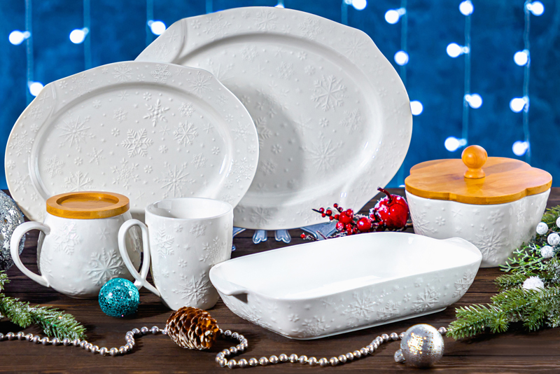 Банка для печенья из серии «Снежинки» предназначена для эстетичной сервировки вашего стола. Размер изделия – 19,5х19,5х10 см, объём – 900 мл. Выполнена из высококачественного белого фарфора в форме цветка и украшена рельефным узором в виде снежинок. Крышка выполнена из натурального бамбука. Фарфор легко отмывается и не впитывает цвет продуктов, благодаря чему надолго сохранит свою белизну. Красивая ёмкость станет не только функциональным, но и эстетичным дополнением вашего кухонного инвентаря. Наполните баночку любимым печеньем: бисквитным, сахарным или творожным. Послужит в качестве конфетницы: сложите в неё конфеты, шоколад, маленькие пирожные, пряники или любые другие сладости и выпечку. Наполните десертную вазочку большой порцией мороженного или разными десертами, чтобы разделить угощение с семьёй или друзьями. Используйте для подачи закусок: ягод, орехов, кусочков сыра или фруктов. Заполните дольками лимона, чтобы добавлять их в чай. Подойдёт для хранения сыпучих продуктов: кофе, сахара и соли, специй и приправ. Компактный контейнер удобно хранить в шкафчиках и на полках. Крышка сервировочной баночки имеет свободную посадку, чтобы вы могли легко и быстро открывать её. Она достаточно герметична, чтобы обеспечить сохранность продуктов. Благодаря стильному и лаконичному дизайну изделие гармонично впишется в интерьер любой кухни. Не рекомендуется применять абразивные моющие средства. Без бамбуковой крышки подходит для использования в посудомоечной машине и микроволновой печи. Бамбук нельзя замачивать. Поставляется в дизайнерской картонной коробке – благодаря ей вам не потребуется дополнительная подарочная упаковка. Посуда из серии «Снежинки» станет отличным подарком для хозяйки, ценящей не только практичность, но и стиль, и поможет собрать сервиз в едином стиле.
