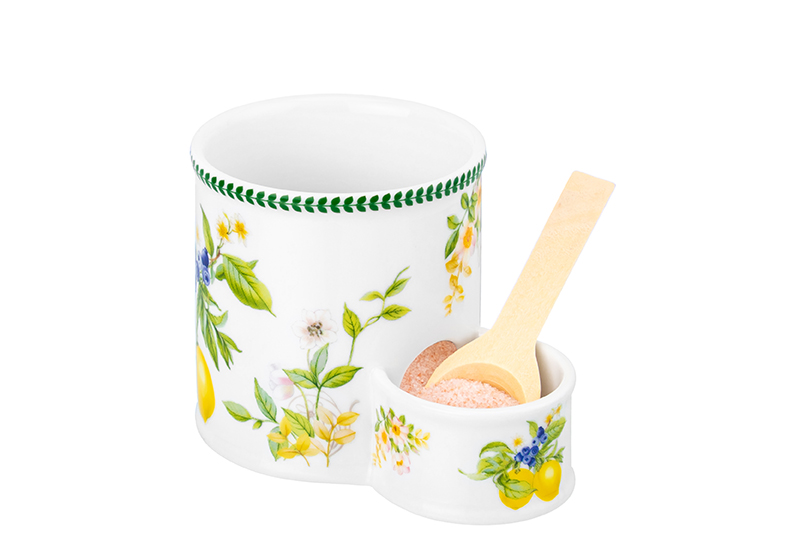 Банка д/соли 12,5*8,5*12,5 см 350 мл "Лимоны" с крышкой + деревянная ложка, NEW BONE CHINA