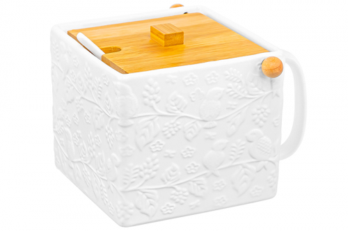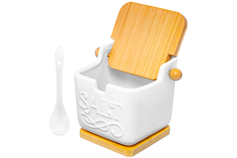 Банка для сыпучих продуктов из серии «Bon Appetit» от Elan Gallery послужит для организации хранения на вашей кухне. Размер ёмкости – 12х9х9,5 см, объём – 300 мл. Выполнена из высококачественного белого фарфора и украшена изысканной надписью «Salt» («Соль»). Фарфор не впитывает цвет продуктов и легко отмывается, благодаря чему надолго сохранит свою белизну. Откидная крышка и подставка выполнены из бамбука. «Bon Appetit» – это коллекция посуды в стиле френч-винтаж, которая создаст на вашей кухне атмосферу романтики и уюта. Отличительные черты серии – это сочетание светлых оттенков и картинки, стилизованной под ретро. Лаконичные фразы на посуде добавят изысканности и утончённости каждому приёму пищи. Изделие отлично подойдёт не только для соли, но и для сахара, чая и кофе, приправ и специй. Храните в нём ягоды, орехи и сухофрукты, а также небольшую порцию конфет, леденцов и мармеладок. Фарфоровая ложечка поможет набрать необходимое количество продукта и компактно помещается в баночке благодаря выемке на крышке. Герметичная откидная крышка защитит ваши продукты от попадания пыли и грязи. Она легко открывается, благодаря чему баночка станет удобным и стильным дополнением любой чайной сервировки. Не рекомендуется применять абразивные моющие средства. Не подходит для использования в посудомоечной машине и микроволновой печи. Бамбук нельзя замачивать! Поставляется в дизайнерской картонной коробке – благодаря ей вам не потребуется дополнительная подарочная упаковка. Это идеальный подарок для хозяйки, ценящей не только практичность, но и привлекательность. Коллекция посуды «Bon Appetit» от бренда Элан Галерея впишется в любой интерьер и придаст шарма и элегантности сервировке ваших блюд!