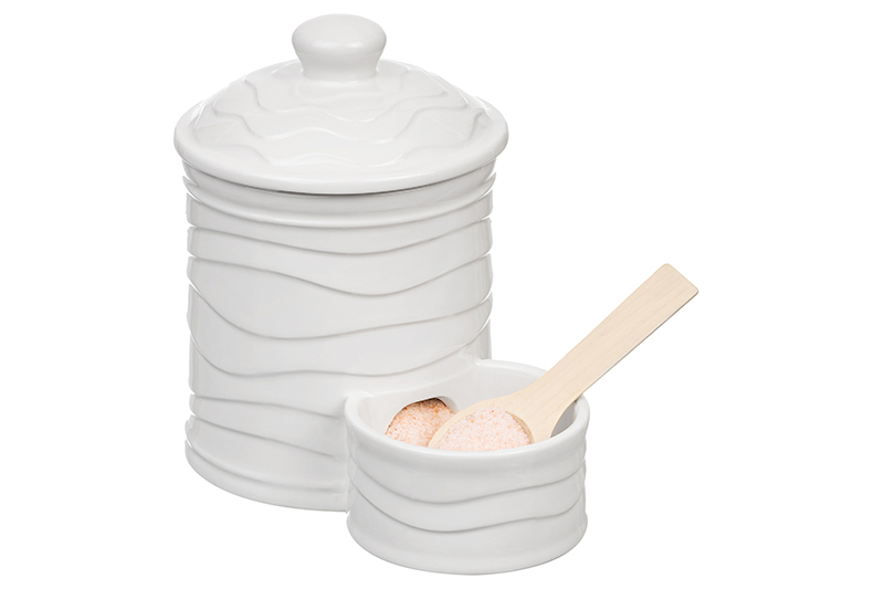 Банка из серии «Айсберг волны» от Elan Gallery послужит для организации хранения сыпучих продуктов на вашей кухне. Размер ёмкости – 15,5х10х14,5 см, объём – 500 мл. Высота внешней солонки – 4 см, её объём – 75 мл. Выполнена из высококачественного белого фарфора. Он не впитывает цвет продуктов и легко отмывается, благодаря чему надолго сохраняет свою белизну. Поверхность изделия украшают рельефные узоры в виде поперечных волн. Ложечка выполнена из бамбука. Ёмкость подойдёт для хранения разнообразных сыпучих продуктов. Заполните её сахаром, солью, а также другими специями и приправами, чтобы во время приготовления и приёма пищи всё необходимое было под рукой. Засыпьте внутрь чай или кофе, чтобы в любой момент заварить свежий напиток. Храните в ней крупы и макаронные изделия, ягоды, орехи и сухофрукты. Заполните контейнер сладостями: конфетами, леденцами, пряниками или печеньем. Подайте баночку к столу, чтобы идеально дополнить чайную сервировку! Ложечка поможет вам набрать необходимое количество продуктов. Банка имеет оригинальную форму, которая позволяет эффективно расходовать содержимое и предотвращает скопление остатков на дне. Не рекомендуется применять абразивные моющие средства. Без бамбуковой ложечки подходит для использования в посудомоечной машине и микроволновой печи. Бамбук нельзя замачивать! Поставляется в дизайнерской картонной коробке – благодаря ей вам не потребуется дополнительная подарочная упаковка. Фарфоровая сервировочная посуда будет оригинальным подарком для хозяйки, ценящей не только практичность, но и привлекательность. Серия «Айсберг волны» от бренда Элан Галерея станет украшением любого кухонного инвентаря и позволит собрать красивый сервиз в едином стиле!