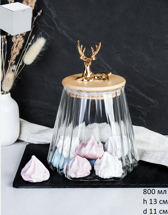 Банка для хранения бамбуковая крышка с фигуркой 800 мл 13х11 см / 7606 /уп 48/ новогодняя