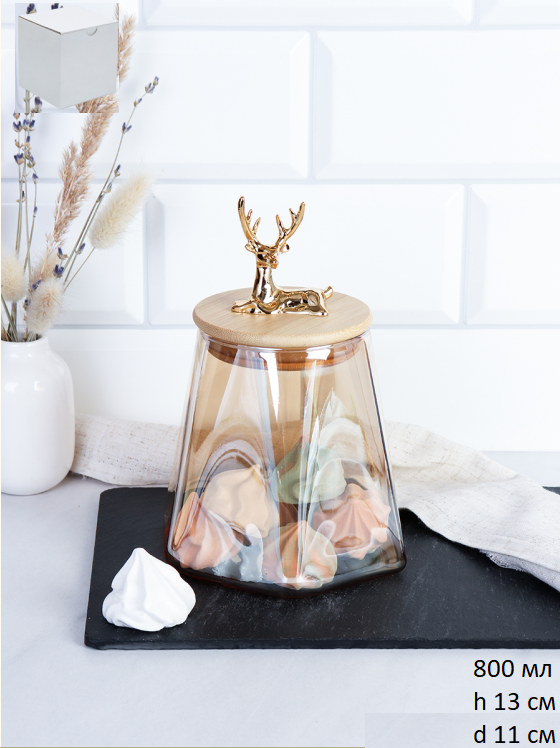 Банка для хранения бамбуковая крышка с фигуркой 800 мл 13х11 см / 9860 /уп 48/ новогодняя
