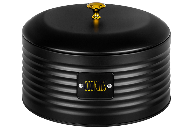 Банка для печенья чёрного цвета от Elan Gallery – это стильное решение для хранения любимых лакомств! Размер 21,5х21,5х14,5 см, объём 3 литра. Высота без крышки 10,5 см. Выполнена из металла с пудровым покрытием, что обеспечивает долговечность её использования. Имеет красивую фигурную ручку из пластика золотого цвета и украшена надписью "Cookies" ("Печенье"). Крышка на металлическом контейнере оснащена силиконовым уплотнителем. Металлическая крышечка плотно сидит, защищая сладости от пыли и влаги. Красивая сервировочная ёмкость станет не только функциональным, но и эстетичным дополнением вашего кухонного инвентаря. Благодаря стильному дизайну баночка станет предметом декора кухни или столовой, украсит интерьер. Храните в ней печенье, вафли и пряники. Благодаря эргономичной форме органайзер подойдёт для хранения пакетов с выпечкой и большого количества конфет. В большую баночку уместится много конфеток и шоколадок, в отличие от декоративной конфетницы или вазочки. Можно использовать не только для эстетичного хранения, но и сервировки. Красивая подача угощений к чаю позволит создать особую атмосферу. Альтернативный вариант использования железной коробочки – для хранения украшений или швейных принадлежностей. Не рекомендуется применять абразивные моющие средства. Нельзя использовать в посудомоечной машине. Банка для печенья от Elan Gallery позволит эстетично хранить любимые лакомства и удивит ваших гостей. Станет полезным подарком на любой праздник мужчинам и женщинам. Поставляется в стильной картонной коробке. Благодаря красочной коробочке не понадобится подарочная упаковка. В коллекции бренда Elan Gallery представлены стильные товары для дома. Здесь вы найдёте банки для хранения круп и других сыпучих продуктов, а также хлебницы со стильным дизайном. Соберите набор посуды для вашей кухни в едином стиле!