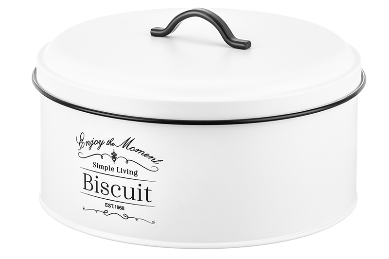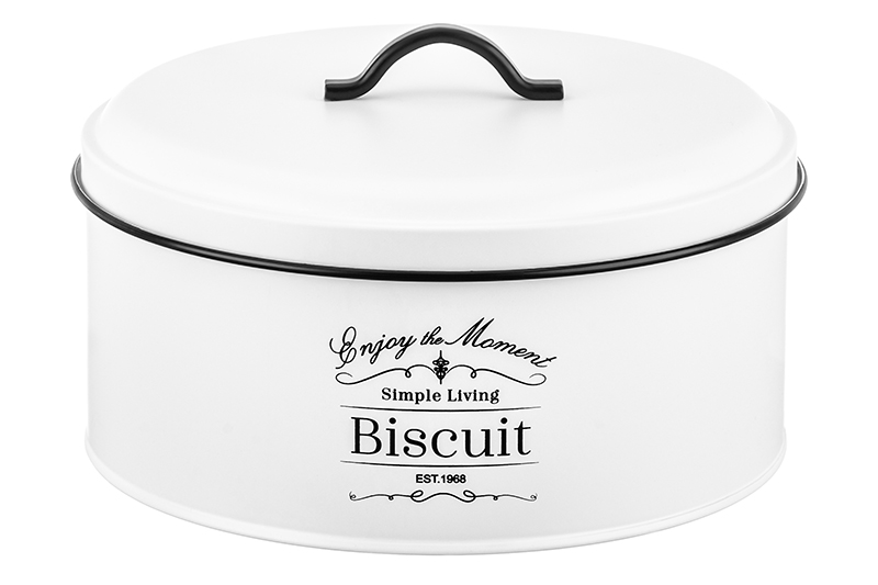 Банка для печенья белого цвета от Elan Gallery – это стильное решение для хранения лакомств! Размер 23х23х14,5 см, объём 3 литра. Высота без крышки 10,5 см. Выполнена из металла с пудровым покрытием, что обеспечивает долговечность использования. Круглый контейнер украшен надписями чёрного цвета: "Enjoy the moment" ("Наслаждайся моментом"), "Simply living" ("Жить просто") и "Biscuit" ("Печенье"). Фраза "Simply living" – это отсылка к интерьерным решениям для кухни, направленным на упрощение вашей жизни. Благодаря кухонному органайзеру любимые сладости будут под рукой! Металлическая крышечка с ручкой в форме петельки защищает продукты от пыли и влаги. Сервировочная ёмкость дополнит вашу коллекцию кухонного инвентаря. Благодаря стильному дизайну баночка станет предметом декора кухни или столовой, украсит интерьер. Храните в ней вафли и пряники. Органайзер подойдёт для пакетов с выпечкой и большого количества конфет. В большую баночку уместится много конфеток и шоколадок, в отличие от декоративной конфетницы или вазочки. Можно использовать для сервировки. Красивая подача угощений к чаю позволит создать особую атмосферу. Альтернативный вариант использования железной коробочки – для хранения украшений или швейных принадлежностей. Не рекомендуется применять абразивные моющие средства. Нельзя использовать в посудомоечной машине. Банка для печенья от Elan Gallery позволит эстетично хранить любимые лакомства и удивит ваших гостей. Станет полезным подарком на любой праздник мужчинам и женщинам. Поставляется в стильной картонной коробке. Благодаря красочной коробочке не понадобится подарочная упаковка. В коллекции бренда Элан Галерея представлено много товаров для дома. Здесь вы найдёте банки для хранения круп и других сыпучих продуктов, а также хлебницы. Соберите набор посуды для вашей кухни в едином стиле!