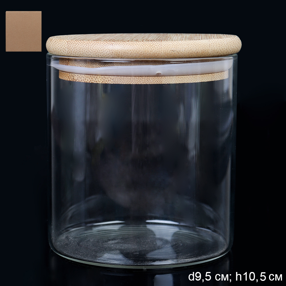 Банка для сыпучих бамбуковая крышка 700 мл диаметр 95/10 см АКЦИЯ / S0209510B /уп 24/ стекло