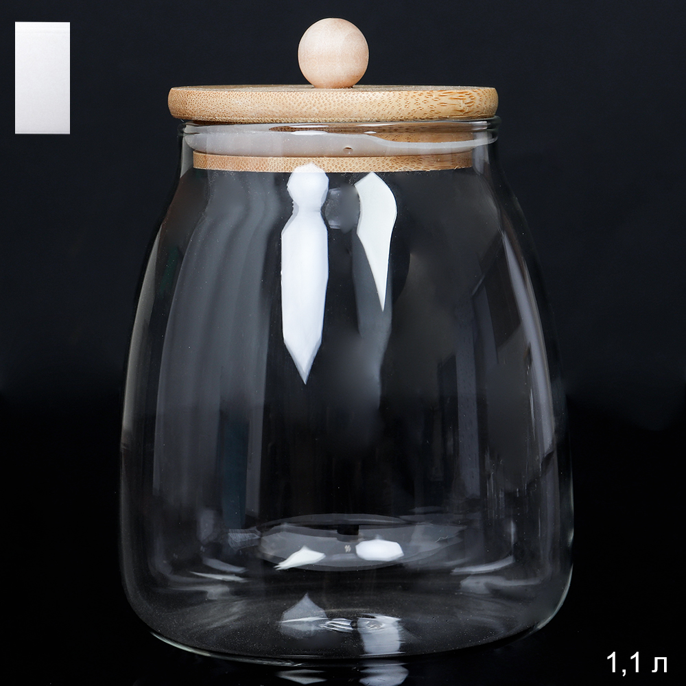 Банка для сыпучих бамбуковая крышка Бочонок 1100 мл АКЦИЯ / LCSC2416 /уп 60/*