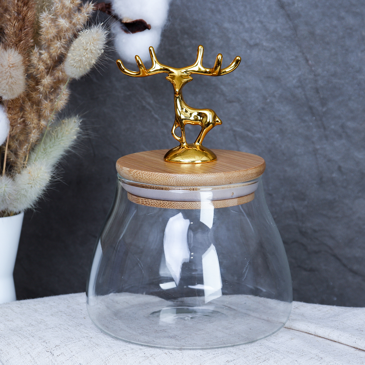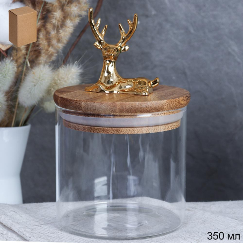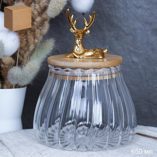 Банка для сыпучих бамбуковая крышка с фигуркой 500 мл 11,5х10,5 см / LCSC2442 /уп 100/ новогодняя