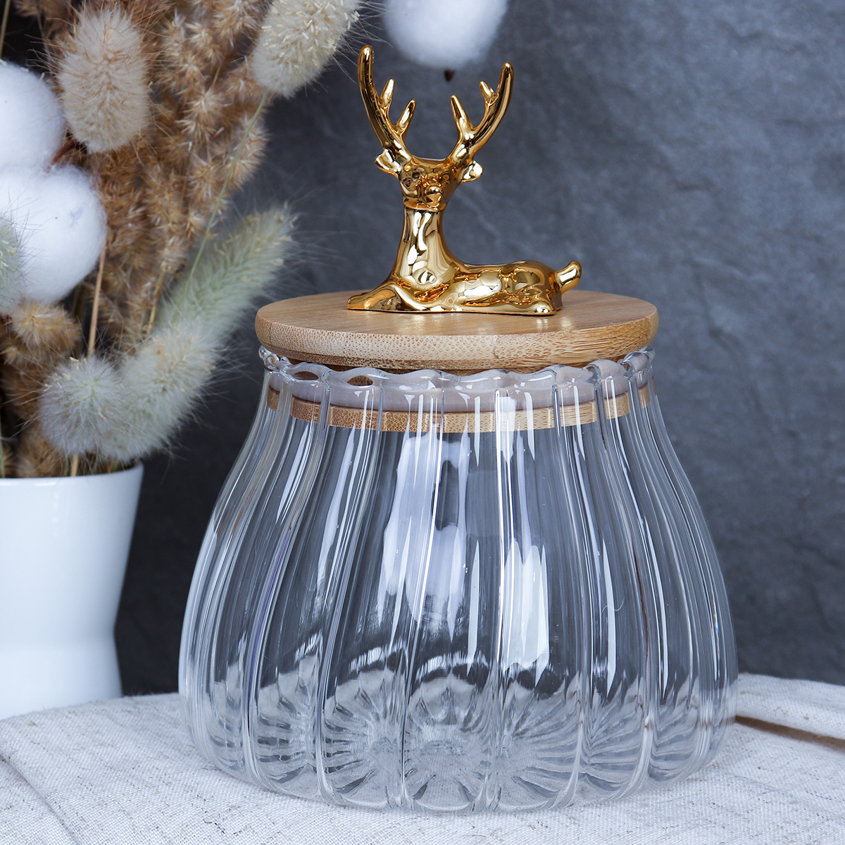 Банка для сыпучих бамбуковая крышка с фигуркой 650 мл / LCSC2448 /уп 100/ новогодняя