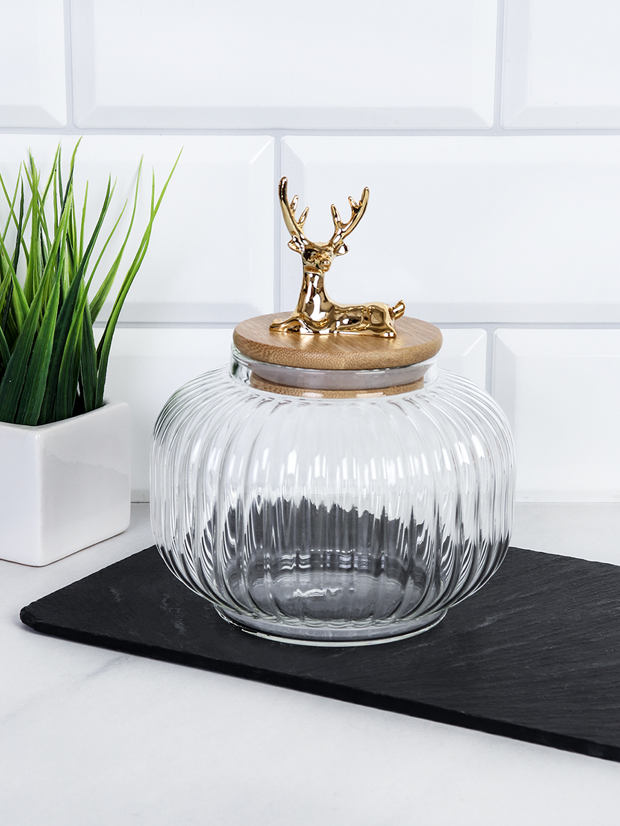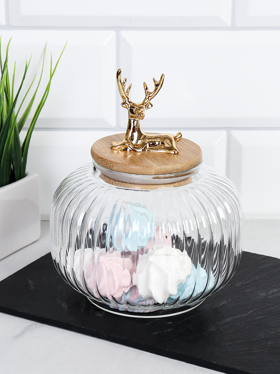 Банка для сыпучих бамбуковая крышка с фигуркой 850 мл / 9936 /уп 60/ новогодняя