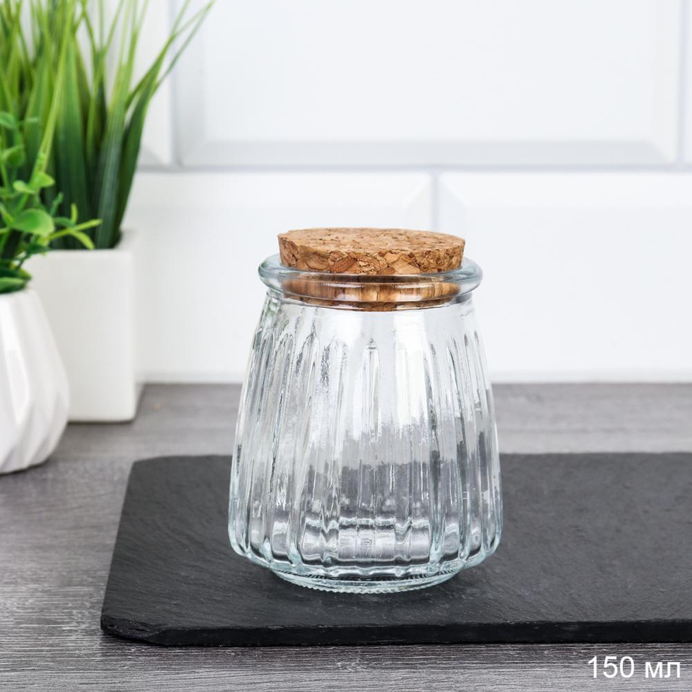 Банка для сыпучих пробковая крышка 150 мл / RB200 /уп 120/рельефная