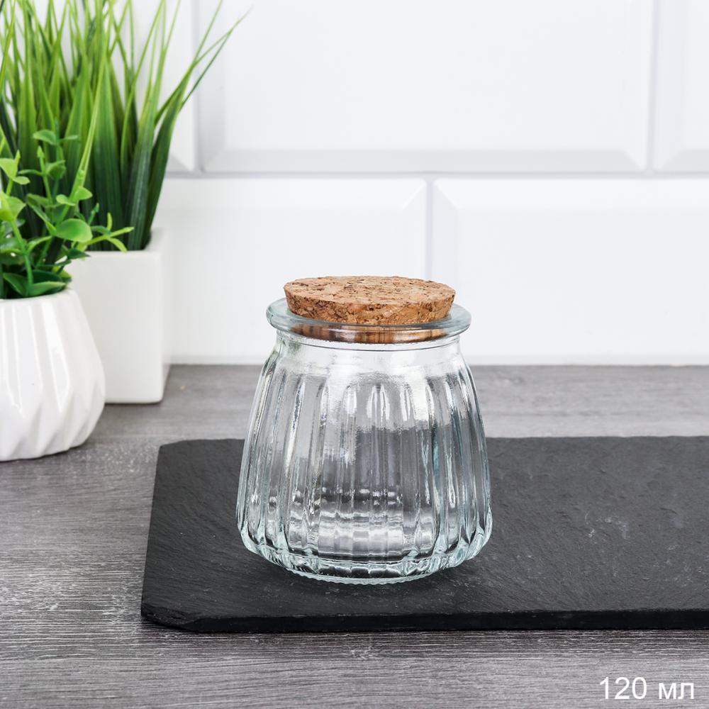 Банка для сыпучих пробокая крышка 120 мл / RB100 /уп 120/рельефная