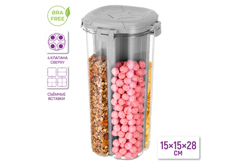 Банка для сыпучих продуктов 15,5*15,5*28,5 см 2,7 л 4-х секционная, с крышкой