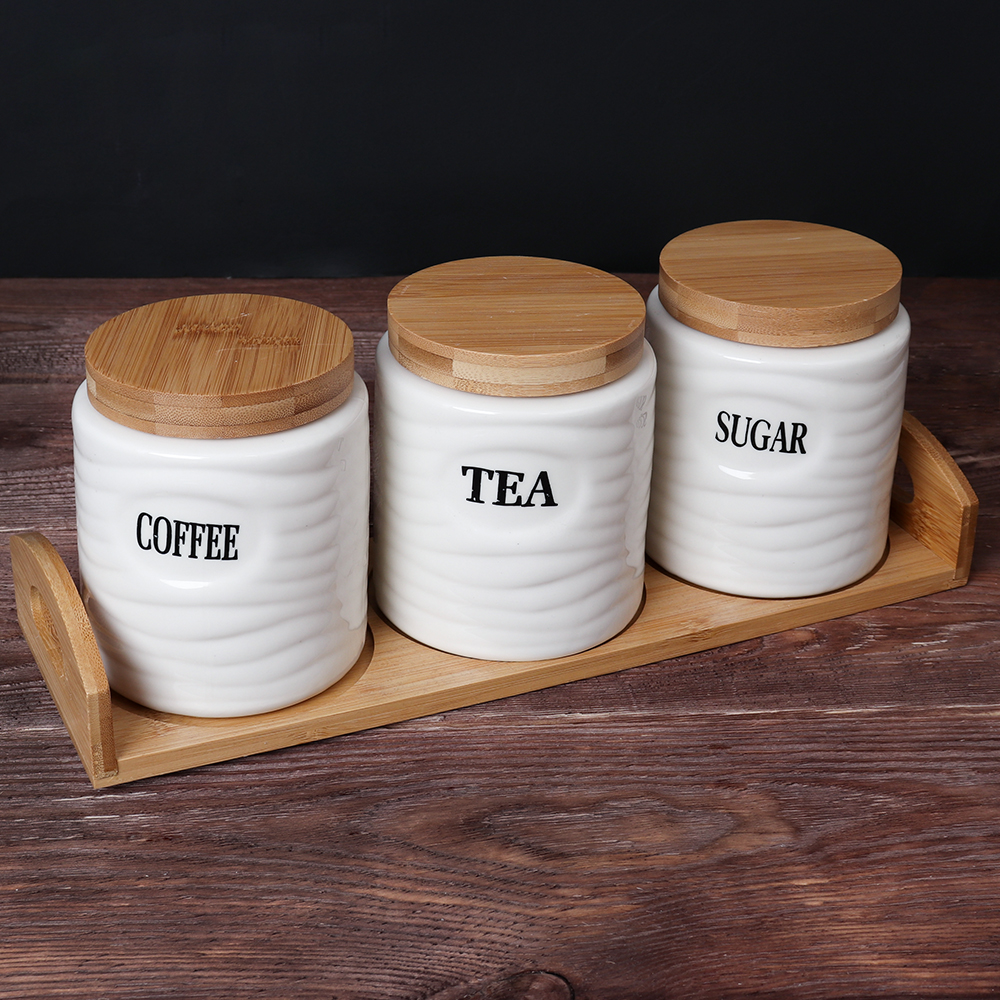 Банка для сыпучих продуктов 3 штуки 750 мл / JC6306B /уп 12/*Ц на подставке