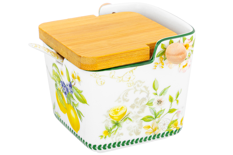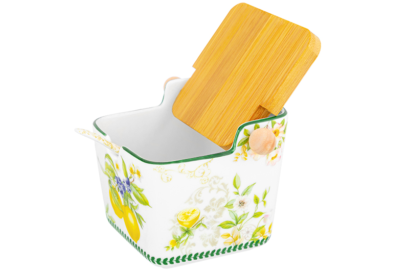 Банка для сыпучих продуктов 300 мл 12*9,5*9 см "Лимоны" с откидной бамбук.крышкой NEW BONE CHINA