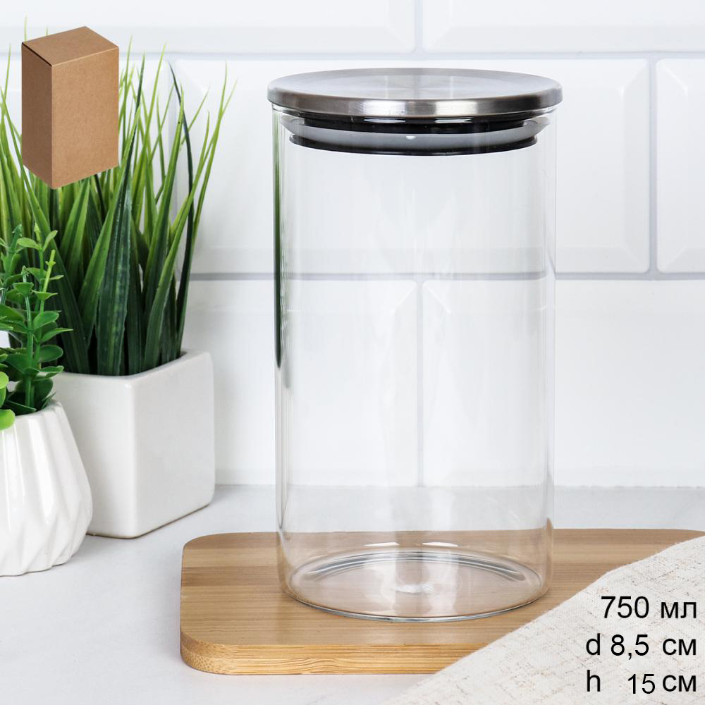 Банка для сыпучих стальная крышка 750 мл диаметр 85/14 см АКЦИЯ / S0208515S B /уп 24/ стекло
