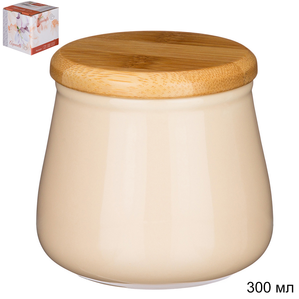 Банка с дер. крышкой Bronco aquarelle 300 мл / 410-138 /уп 16/