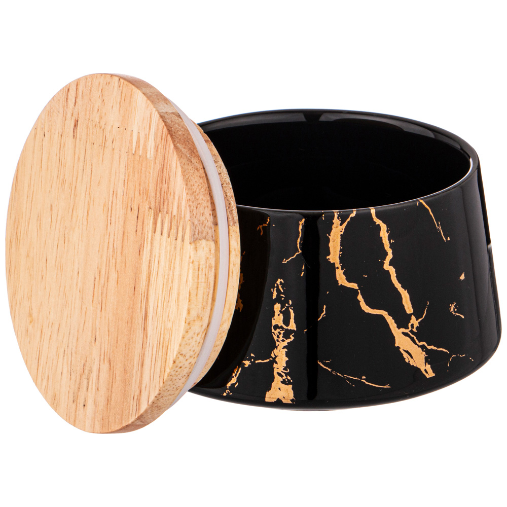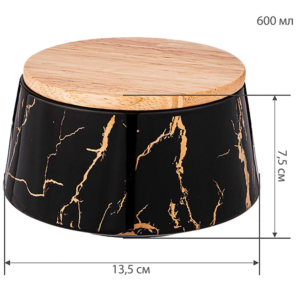 БАНКА С ДЕРЕВ.КРЫШКОЙ LEFARD "FANTASY" 13,5*7,5 СМ 600 МЛ ЧЕРНАЯ (КОР=24ШТ.)