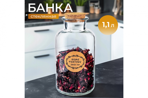 Банка стеклянная 1,1 л 10*10*20,5 см "Glaskraft" "Home Fantasy" с пробковой крышкой