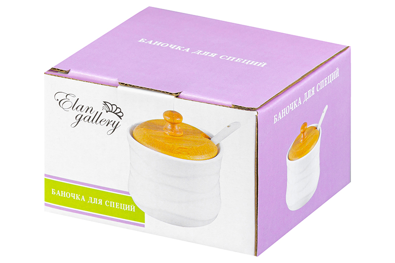 Баночка д/специй 9,5*9*9,5 см 250 мл "Айсберг волны" + ложка + дерев. крышка