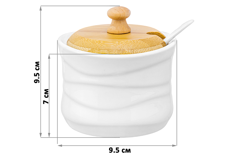 Банка серии "Айсберг волны" объемом 250 мл подойдет для хранения специй и сахара, красивой подачи варенья и меда или для других продуктов. Банка имеет ложку и крышку. Банка и ложка выполнены из высококачественного фарфора, а крышка - из натурального бамбука. Банка с рельефными узорами хорошо впишется в интерьер и поможет организовать хранение даже на открытых полках. Размер изделия 9,5х9х9,5 см. Крышку нельзя замачивать, использовать в микроволновой печи или посудомоечной машине. Банка поставляется в яркой картонной упаковке. Банка из серии посуды "Айсберг волны" сможет стать настоящим украшением кухни или приятным подарком для ваших родных и близких!