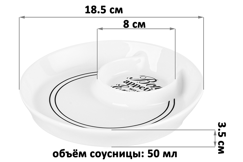 Блюдо Elan Gallery «Bon Appetit» размером 18,5х18,5х3,5 см с соусницей выполнено из белого фарфора. Имеет бортики. Объём соусницы – 50 мл, диаметр – 8 см. Отсек для соуса или кетчупа является неотделимой частью фарфорового изделия. «Bon Appetit» – это коллекция фарфоровой посуды в стиле френч-винтаж, которая создаст на вашей кухне атмосферу романтики и уюта. Она украшена лаконичными надписями чёрного цвета, стилизованными под ретро. Чёрно-белая посуда впишется в любой интерьер кухни или столовой, а также придаст элегантности вашему столу. Круглая тарелка подойдёт для сервировки закусок, нарезки, блюд из мяса или рыбы. Очень удобна для подачи суши и ролл, так как вам не придётся искать отдельную ёмкость для соевого соуса. Сервировочное блюдо пригодится, чтобы создать идеальную атмосферу для приема гостей или романтического ужина дома. Возьмите его на дачу или пикник, чтобы использовать для шашлыка. Не рекомендуется применять абразивные моющие средства. Можно использовать в микроволновой печи и мыть в посудомоечной машине. Поставляется в стильной картонной коробке. Эта тарелка станет отличным подарком на праздник для тех, кто ценит стильную сервировку. Благодаря красочной коробочке вам не понадобится дополнительная подарочная упаковка! В коллекции бренда Elan Gallery представлено много красивых товаров для дома, здесь можно найти тарелки и менажницы на любой вкус!