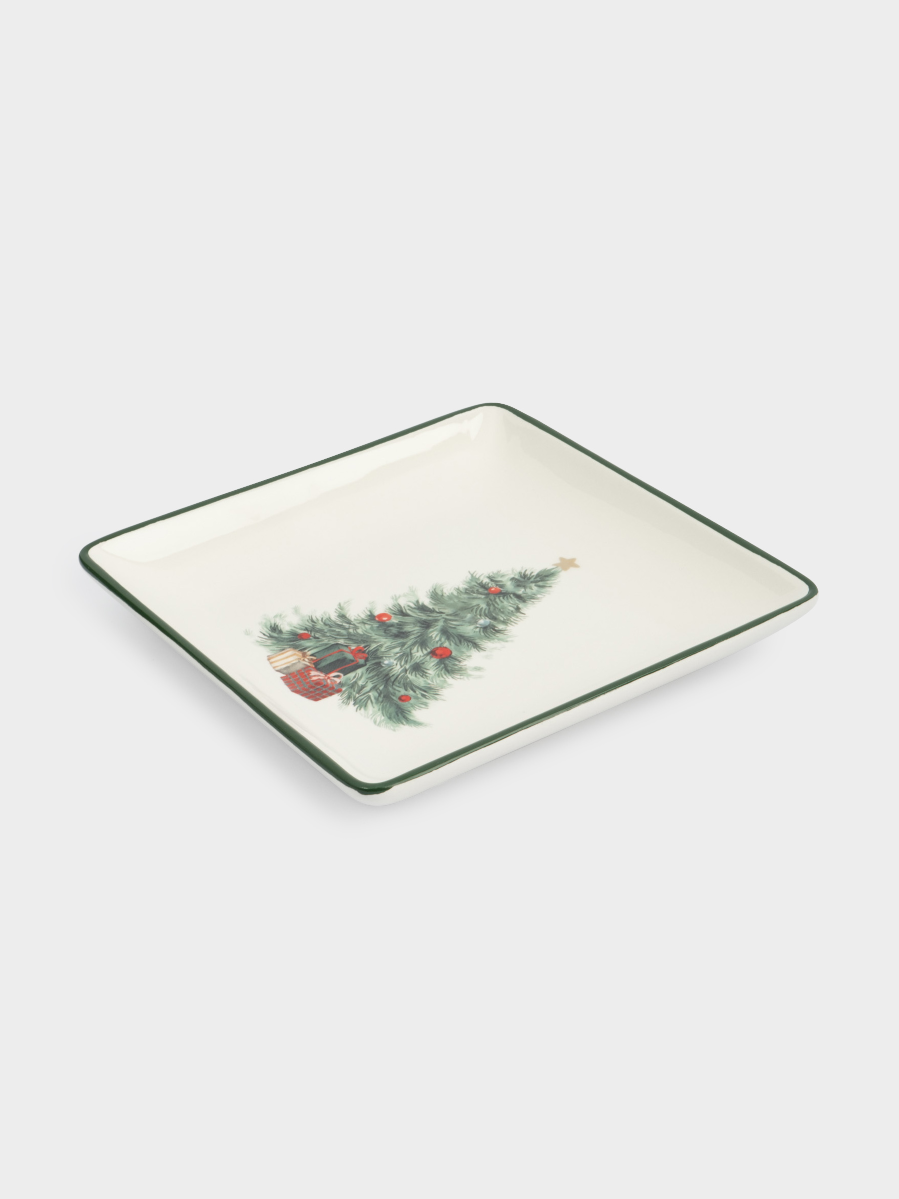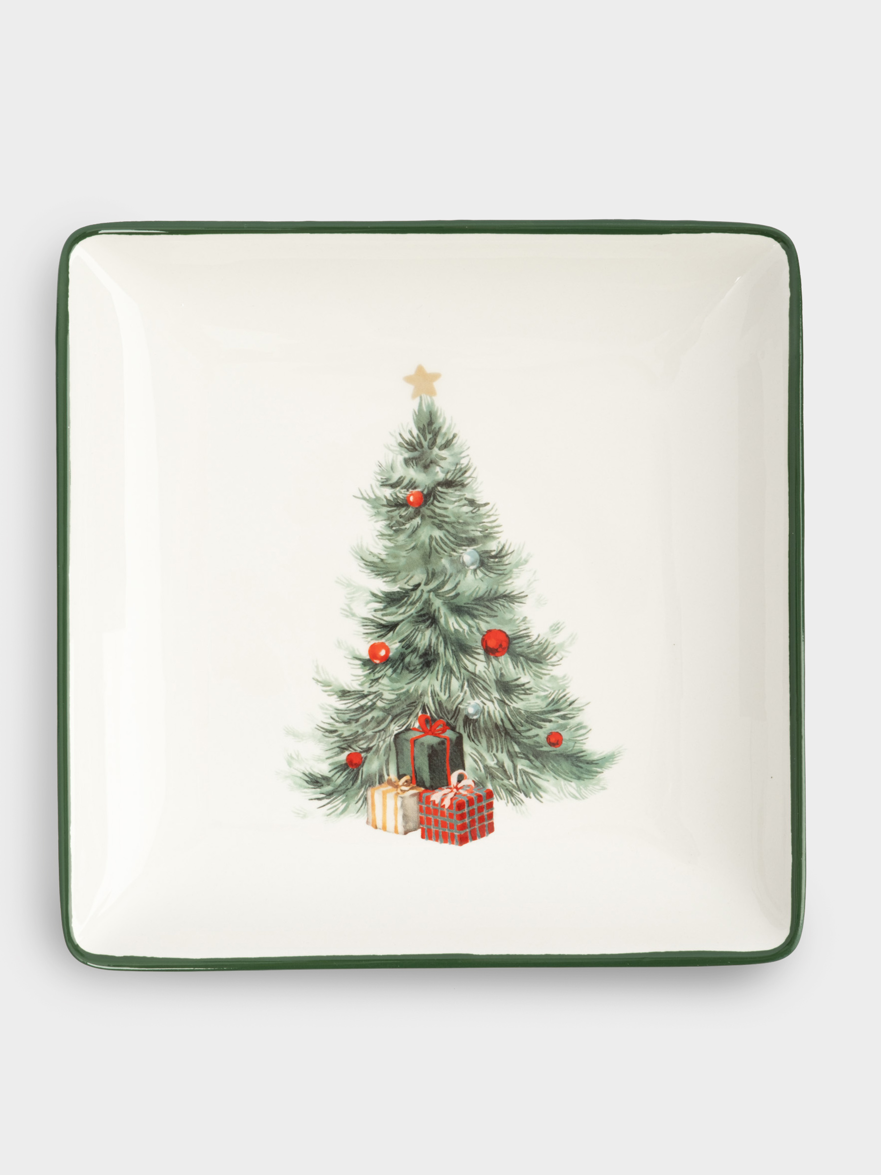 Блюдо, 22х22 см, керамика, квадратное, зеленое, Елка с подарками, Festival
