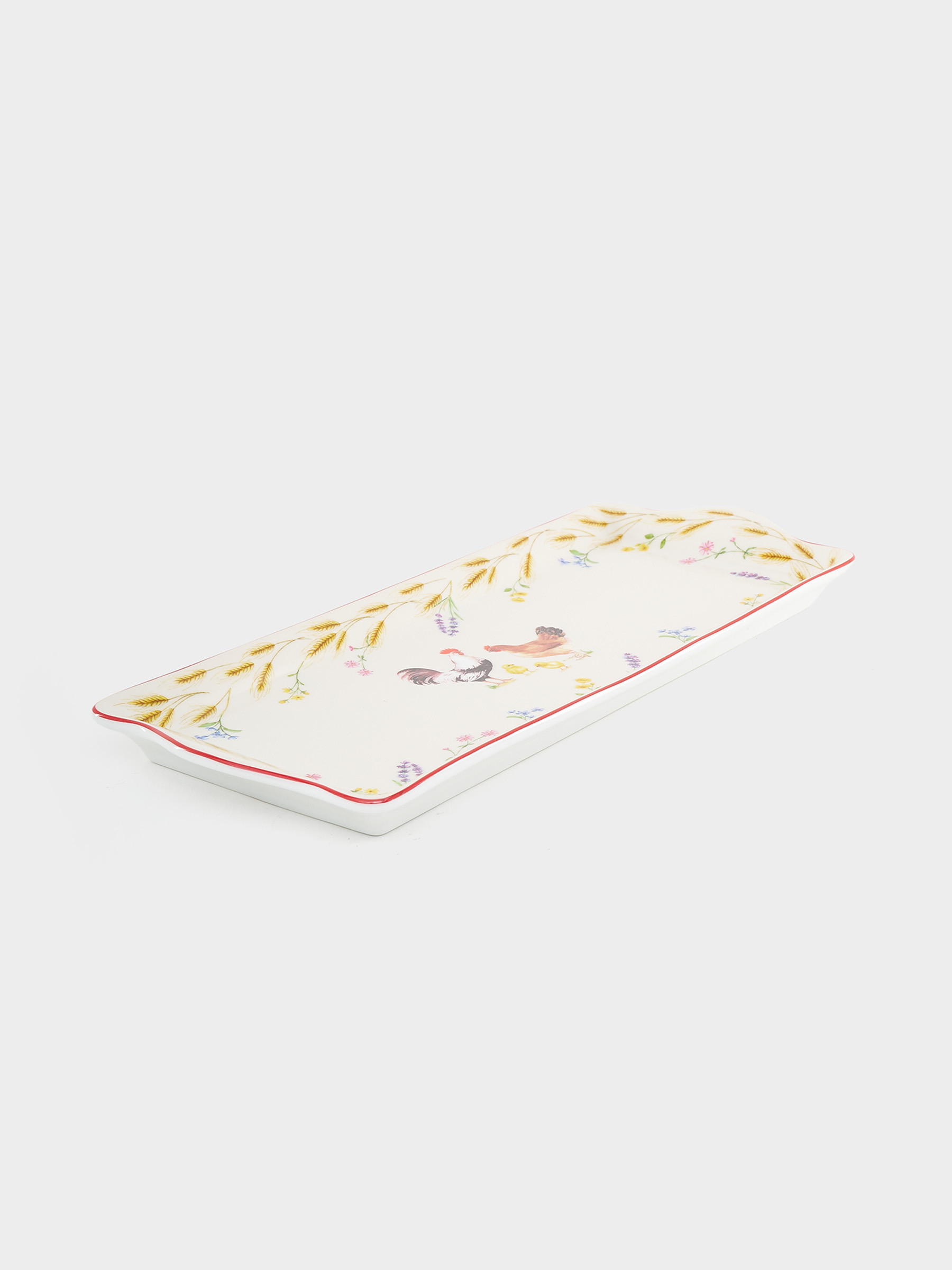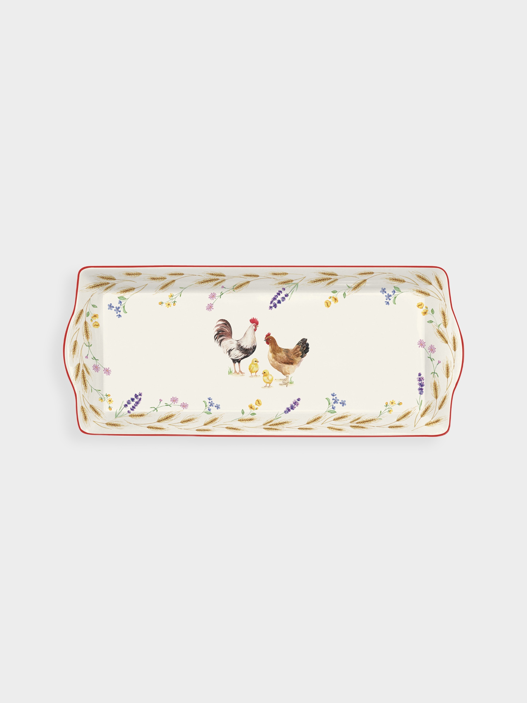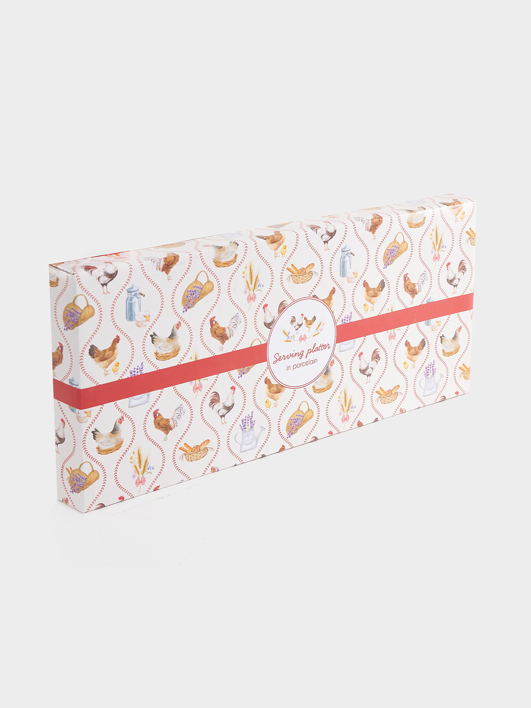 Блюдо, 35х15 см, фарфор P, молочное, прямоугольное, Куры, Country Life. Материал: фарфор Рorcelain. Мыть тёплой водой с применением ЖМС. Можно использовать в СВЧ и мыть в посудомоечной машине.