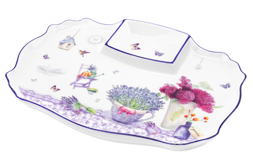 Блюдо д/шашлыка 28*21*2,3 см " Лимоны" с соусницей NEW BONE CHINA