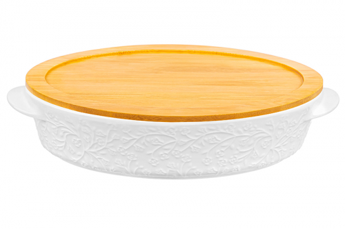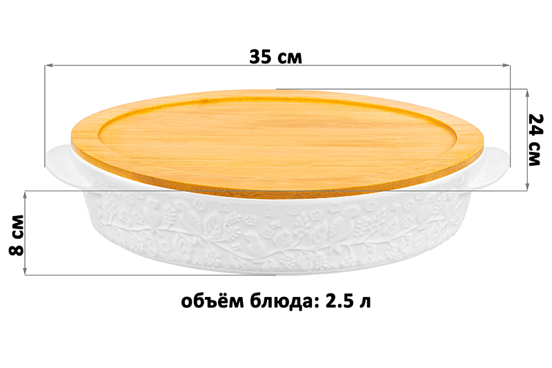 Блюдо д/зап и серв 35*24*8 см 2,5 л "Птички на ветке" овал + дерев. крышка-подставка