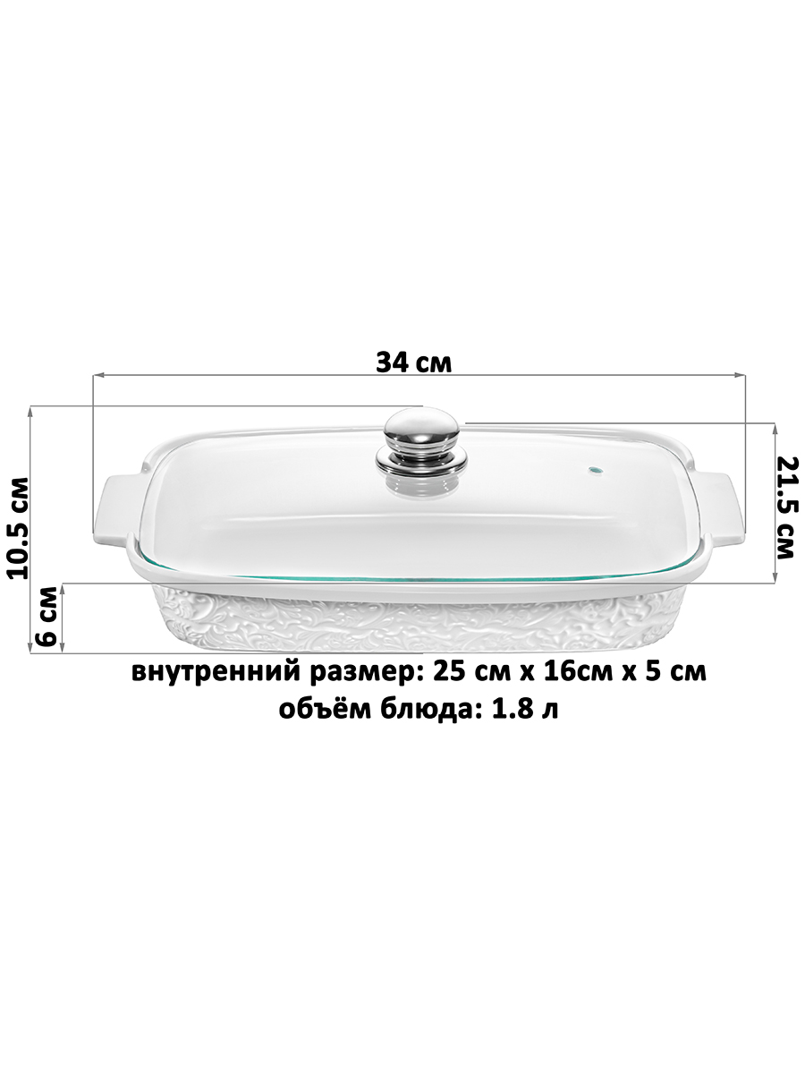 Блюдо д/запекания и сервировки 1,8 л 34*21,5*10,5 см "Лоза" со стеклянной крышкой, прямоугольное