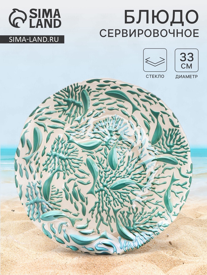 Блюдо диаметром 33 см идеально подходит для подачи различных закусок, салатов и вторых блюд. Его молочный цвет с бирюзовым рисунком в морской тематике добавят нотку свежести и элегантности вашему столу. Рельефная текстура и круглая форма делают его не только функциональным, но и эстетически приятным.
