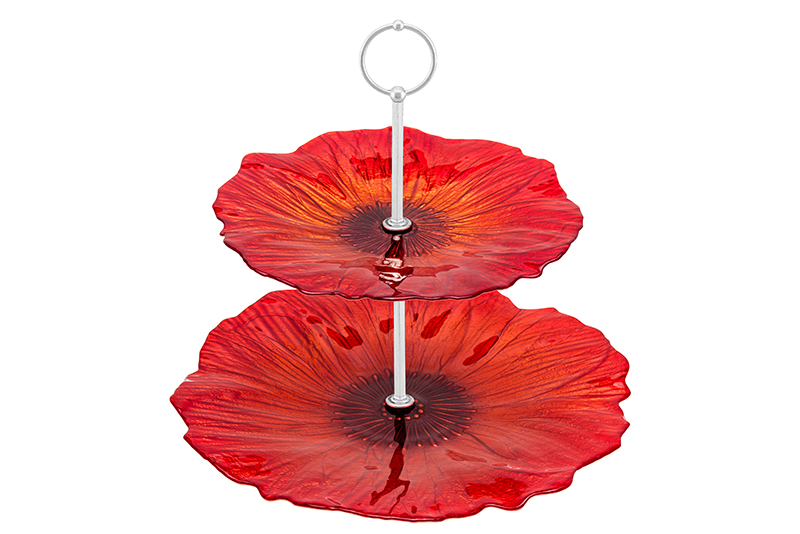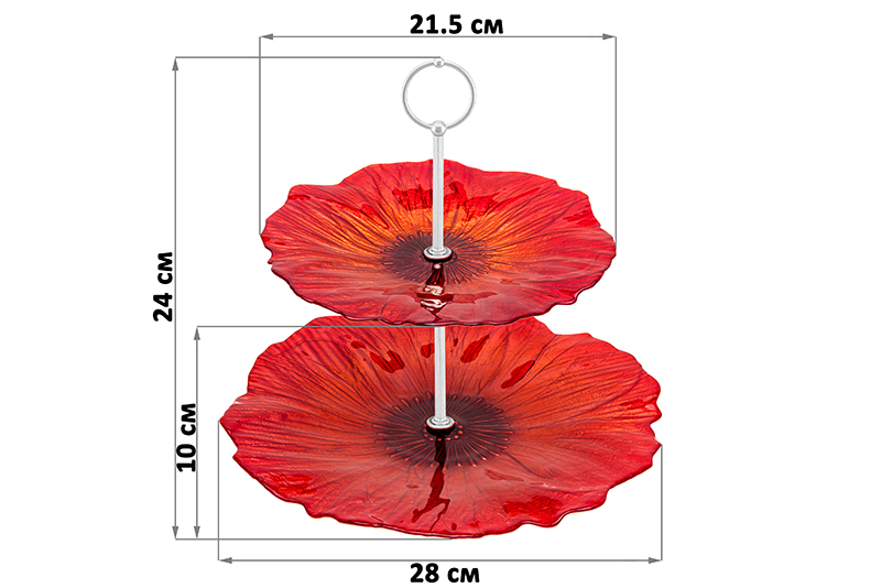 Блюдо - этажерка 2-х ярусная 28*28*24 см "Алые маки"