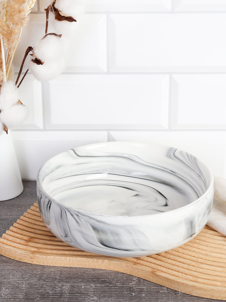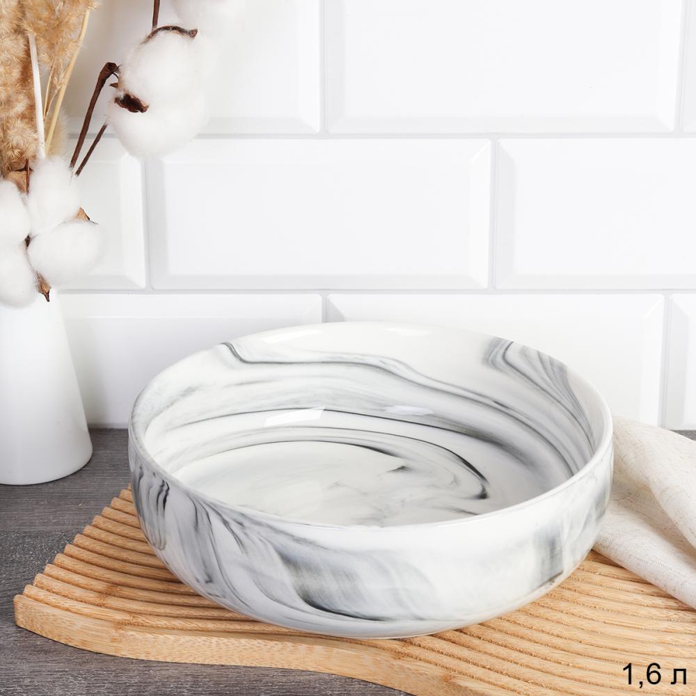 Блюдо глубокое круглое 1600 мл Мрамор / W-305 /уп 7/ 20,5х7 см