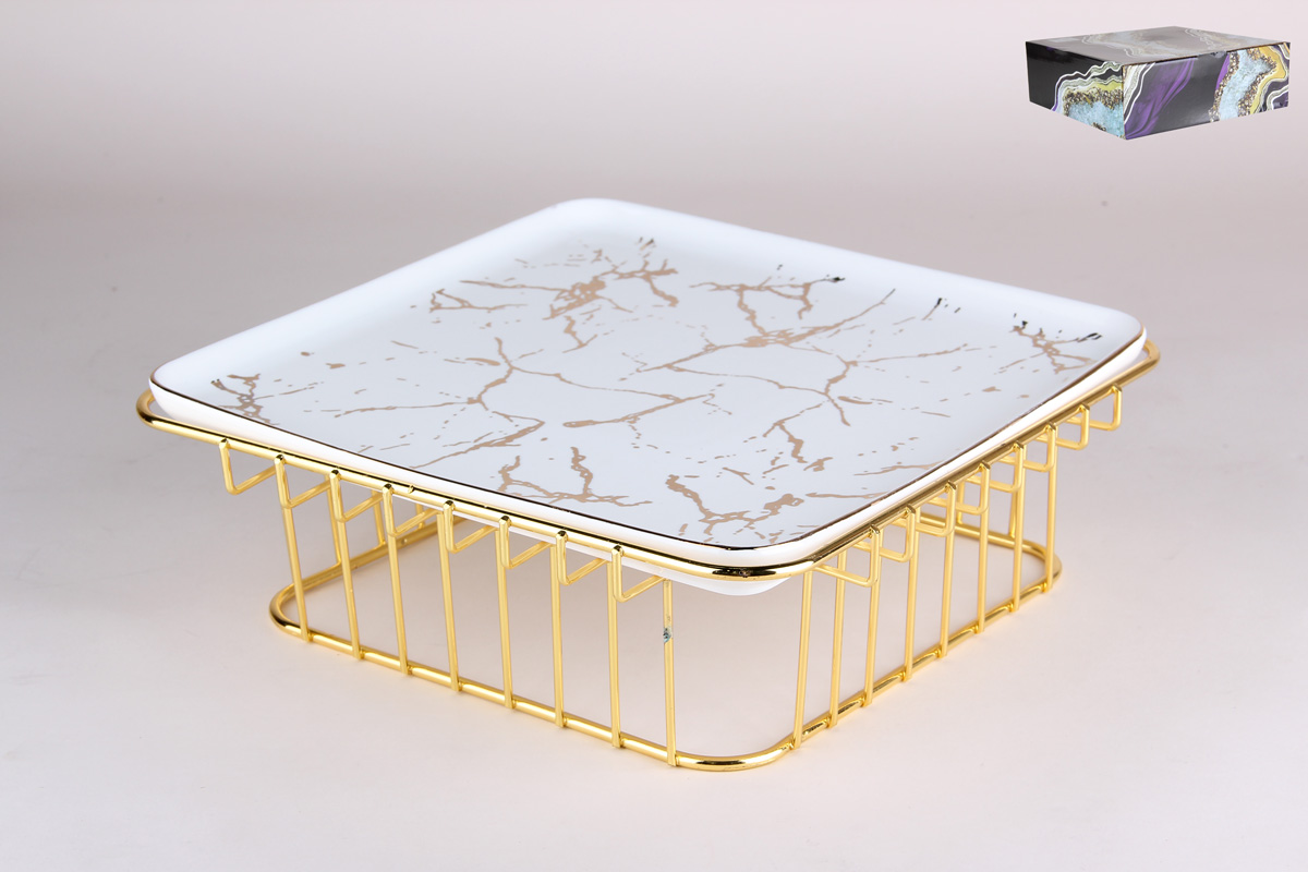 Блюдо на металлической подставке 27х9см Мрамор золотой