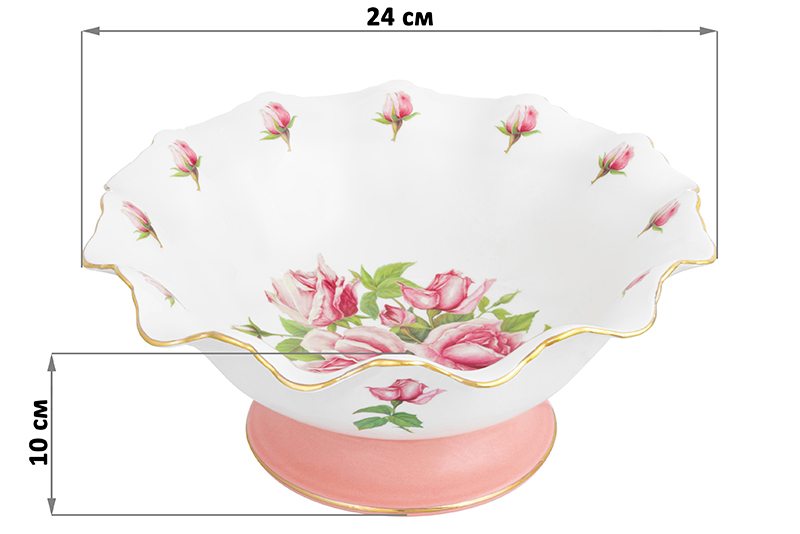 Блюдо на ножке серии "Розовая фантазия" 24х24х10 см подойдет для красивой подачи фруктов, салатов, разнообразных закусок или для украшения интерьера. Блюдо выполнено из высококачественного фарфора, украшено нежными изображениями роз и обрамлено золотым окаймлением. Объем блюда 1,2 литра. Не подходит для использования в микроволновой печи и посудомоечной машине. Поставляется в подарочной упаковке. Блюдо на ножке из серии посуды "Розовая фантазия" сможет стать настоящим украшением кухни или приятным подарком для ваших родных и близких!