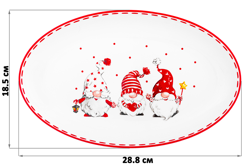 Блюдо овальное серии "Веселые гномики" 28,8х18,5х3,2 см подойдет для сервировки стола, хранения продуктов или украшения интерьера. Блюдо выполнено из высококачественного фарфора и имеет яркие изображения гномиков. Гномы, маленькие новогодние помощники, принесут праздничную атмосферу и подарят каждому хорошее настроение. Блюдо подходит для использования в микроволновой печи и посудомоечной машине. Поставляется в стильной картонной упаковке. Блюдо из серии посуды "Веселые гномики" сможет стать настоящим украшением кухни или приятным подарком для ваших родных и близких!