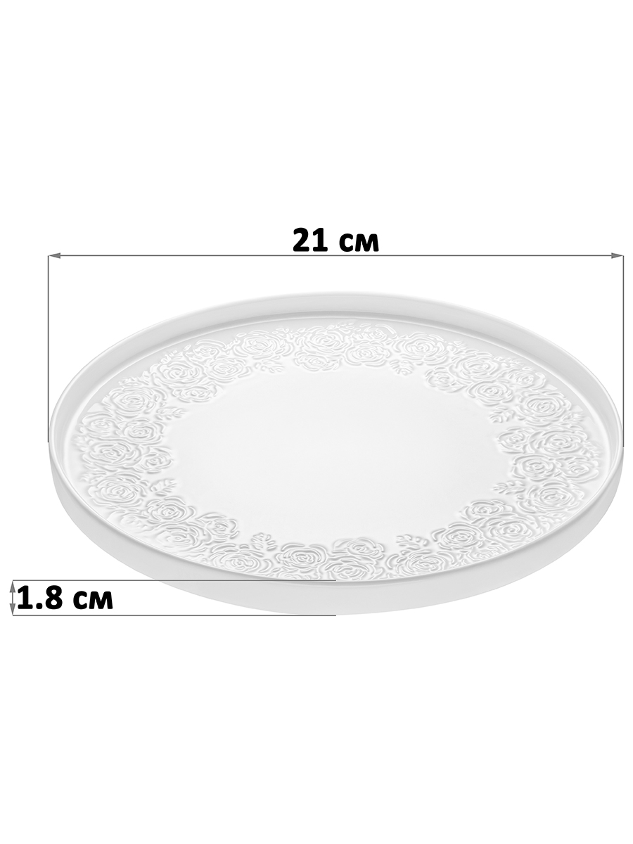 Блюдо-поднос из серии «Розы» от Elan Gallery предназначено для подачи разнообразных угощений. Размер изделия – 21х21х1,8 см, внутренний диаметр – 19,5 см. Выполнено из высококачественного белого фарфора. Он не впитывает цвет продуктов и легко отмывается, благодаря чему надолго сохранит свою белизну. Поверхность изделия украшена рельефной каймой в виде пышных бутонов роз. Благодаря лаконичному, но изысканному дизайну посуда впишется в любой интерьер. Подойдёт для подачи сыра и колбасы, а также рыбных и мясных деликатесов. Красиво подайте на завтрак бутерброды из хлеба с нарезкой. Идеально подойдёт для сервирования закусок – суши, роллов и канапе, а также салатов, свежих фруктов и овощей. Наполните его десертами и сладостями, например, конфетами, печеньями, кусочки торта и пирога. Можно использовать в качестве декоративной подставки. Блюдо станет незаменимым элементом сервировки как в будни, так и на праздник. Не рекомендуется применять абразивные моющие средства. Можно использовать в посудомоечной машине и микроволновой печи. Поставляется в дизайнерской картонной коробке – благодаря ей вам не потребуется дополнительная подарочная упаковка. Фарфоровая сервировочная посуда будет оригинальным подарком для хозяйки, ценящей не только практичность, но и привлекательность. Серия «Розы» от бренда Элан Галерея станет украшением любого кухонного инвентаря и позволит собрать красивый сервиз в едином стиле!