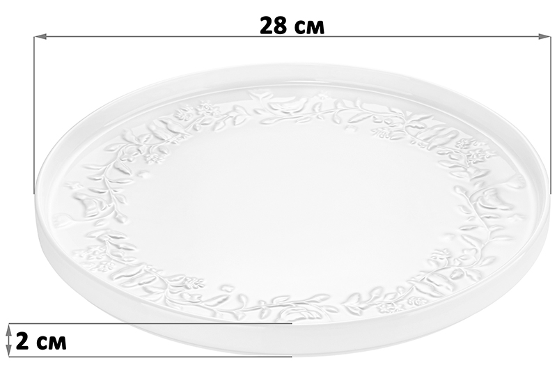 Блюдо-поднос из серии «Птички на ветке» предназначено для подачи разнообразных угощений. Размер изделия – 28х28х2 см. Выполнено из высококачественного белого фарфора и украшено рельефной каймой в виде тонких лиственных веточек, на которых расположились маленькие птички. Фарфор не впитывает цвет продуктов и надолго сохранит свою роскошную белизну. Благодаря лаконичному, но изысканному дизайну посуда впишется в любой интерьер. Подойдёт для подачи сыра и колбасы, а также рыбных и мясных деликатесов. Красиво подайте себе на завтрак бутерброды с хлебом и сырной нарезкой. Идеально подойдёт для сервировки закусок – суши, роллов и канапе, а также салатов, свежих фруктов и овощей. Наполните его десертами и сладостями, например, конфетами, печеньями, кусочками торта и пирога. При желании можно использовать в качестве декоративной подставки. Блюдо станет незаменимым элементом сервировки как в будни, так и на праздник. Не рекомендуется применять абразивные моющие средства. Можно использовать в микроволновой печи и посудомоечной машине. Поставляется в красивой картонной коробке – благодаря ей вам не потребуется дополнительная подарочная упаковка. Это идеальный подарок для хозяйки, ценящей не только практичность, но и стиль. Посуда из серии «Птички на ветке» преобразит вашу кухню и позволит собрать сервиз в едином стиле!
